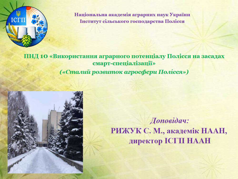 За результатами виконання Інститутом сільського господарства Полісся НААН фундаментальних, прикладних та пошукових завдань ПНД 10 НААН «Використання аграрного потенціалу Полісся на засадах смарт-спеціалізації» («Сталий розвиток агросфери Полісся») директор інституту, академік Сергій РИЖУК представив науковий звіт за 2021-2025 роки та за 2025 рік.